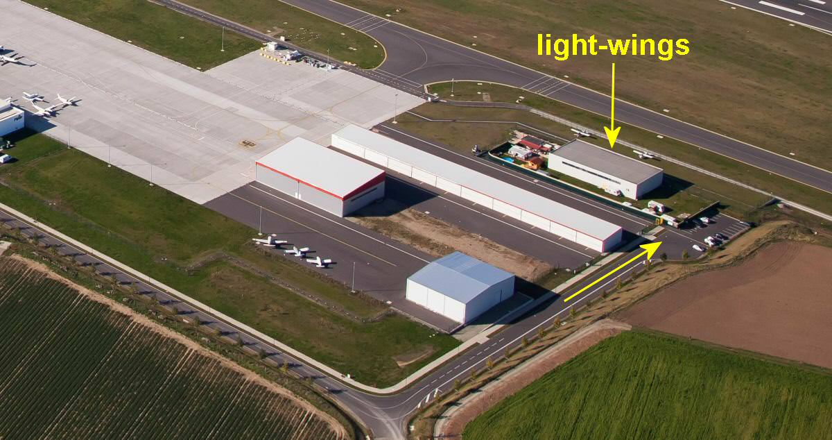 Im 2. Kreisel Richtung Allgemeine Luftfahrt. Am Tower vorbei.